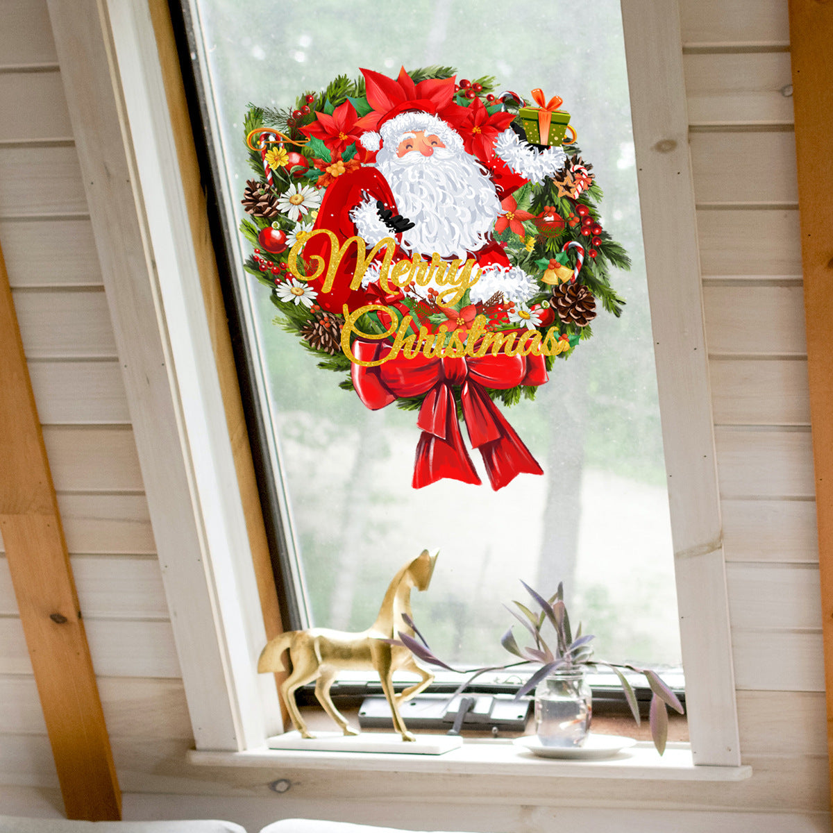 Christmas Wreath Cute Santa Claus English Glass Sticker